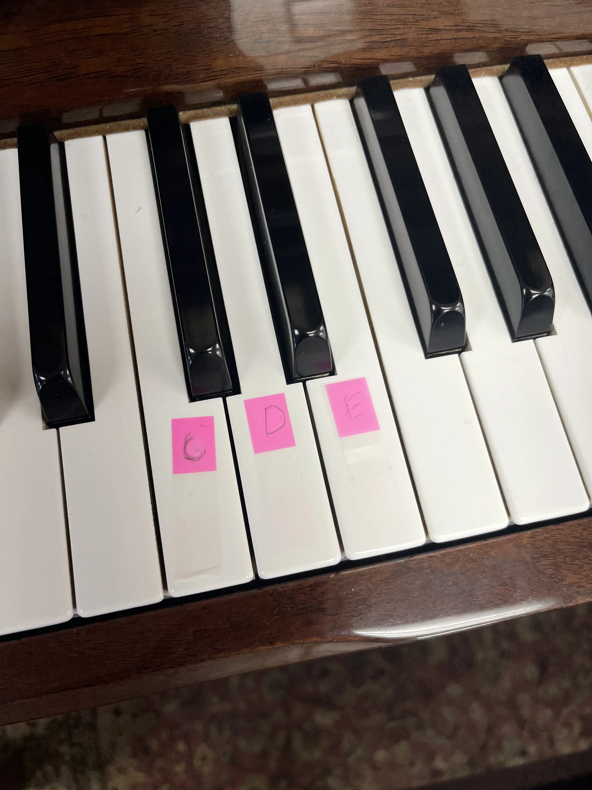 Please avoid placing stickers on the piano keys. Use the Presto’s Piano Keyboard Assistant and the various worksheets available in the books and lesson rooms to help students learn and memorize the piano keyboard. (Using stickers actually slows down the learning/memorizing process, often dramatically and sometimes even traumatically, and also can leave a mess.)